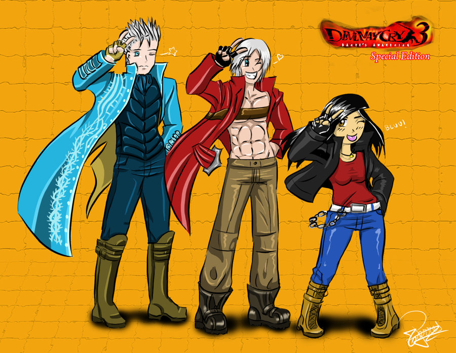 Un dibujo hecho, más que nada, por aburrimiento. Estaba a punto de tirarlo a la basura pero... luego me lo imaginé bien pintado con mi tablero y he aquí el resultado. Una edición especial del DMC 3 que nunca pudo salir al mercado :).